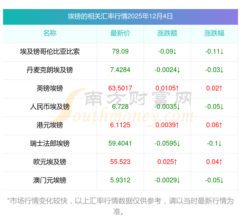 2025年12月4日埃鎊相關(guān)匯率查詢