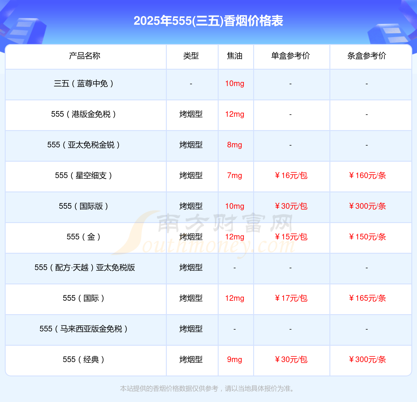 以上香煙價(jià)格相關(guān)數(shù)據(jù)僅供參考,溫馨提示,吸煙有害健康。