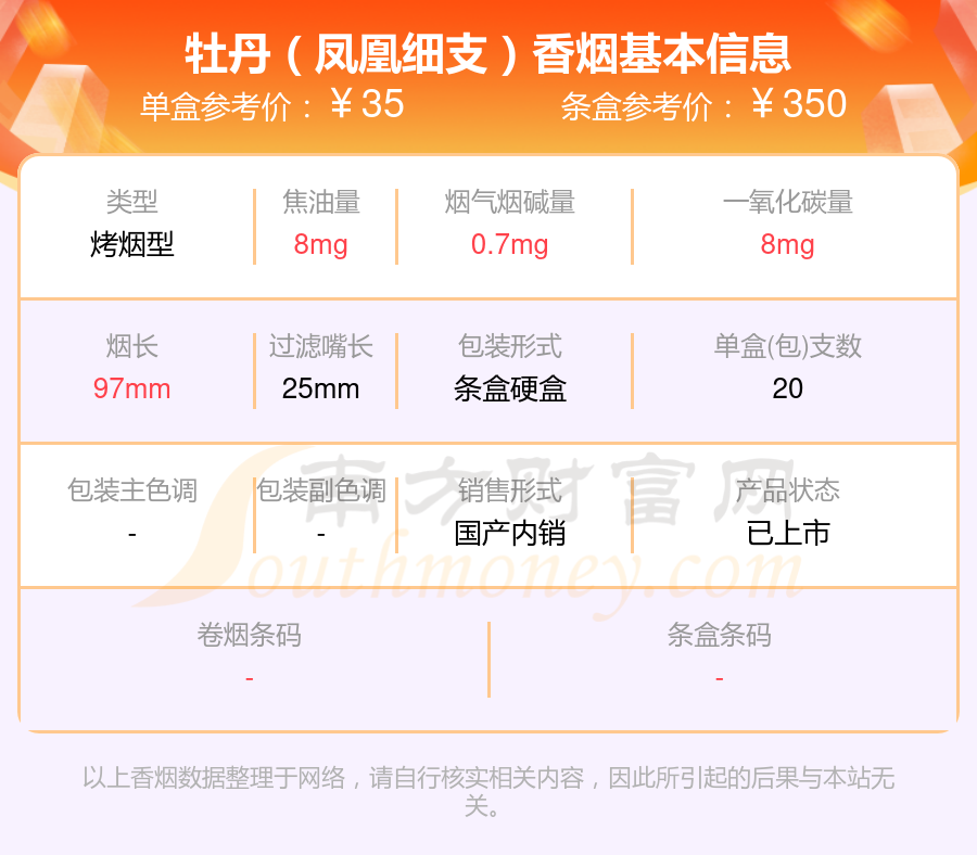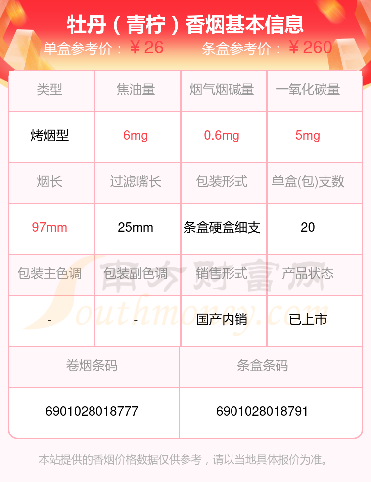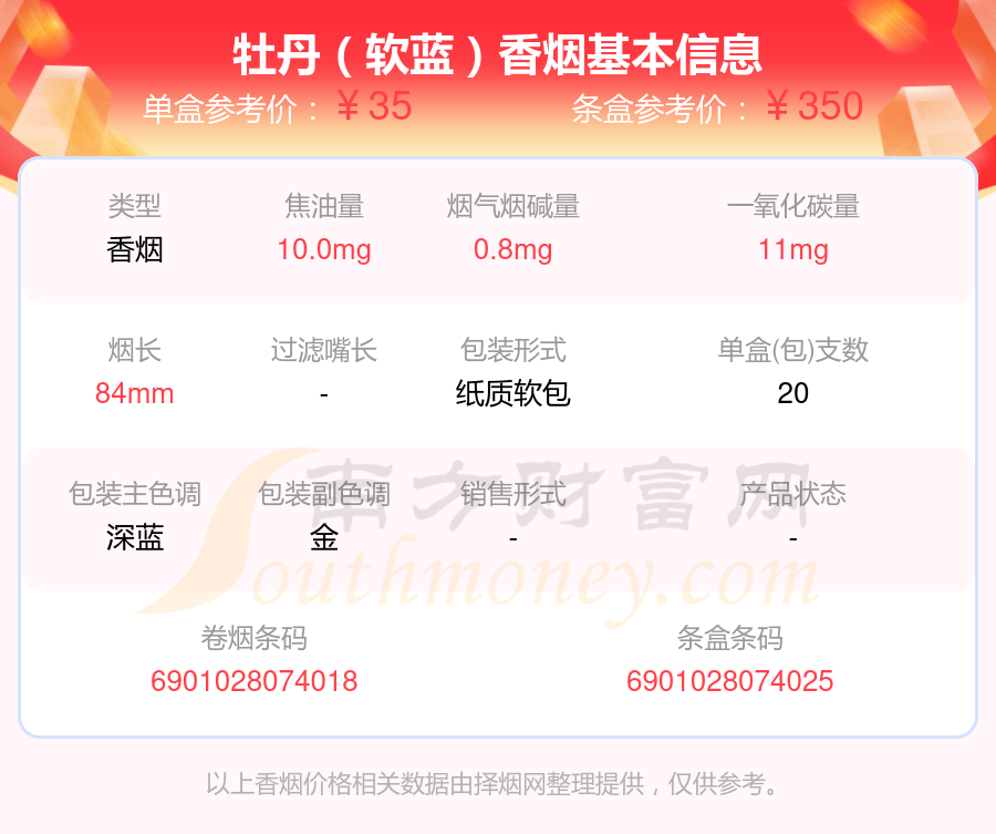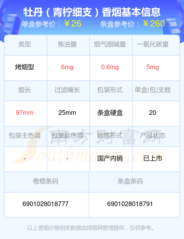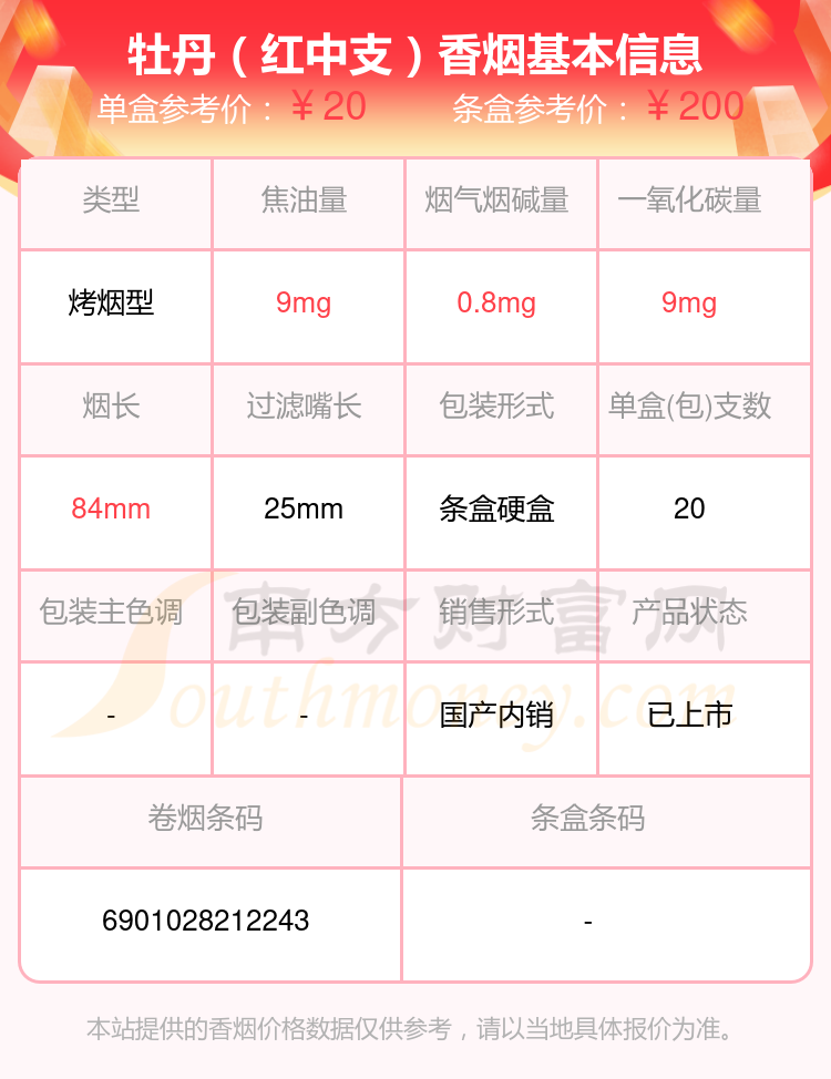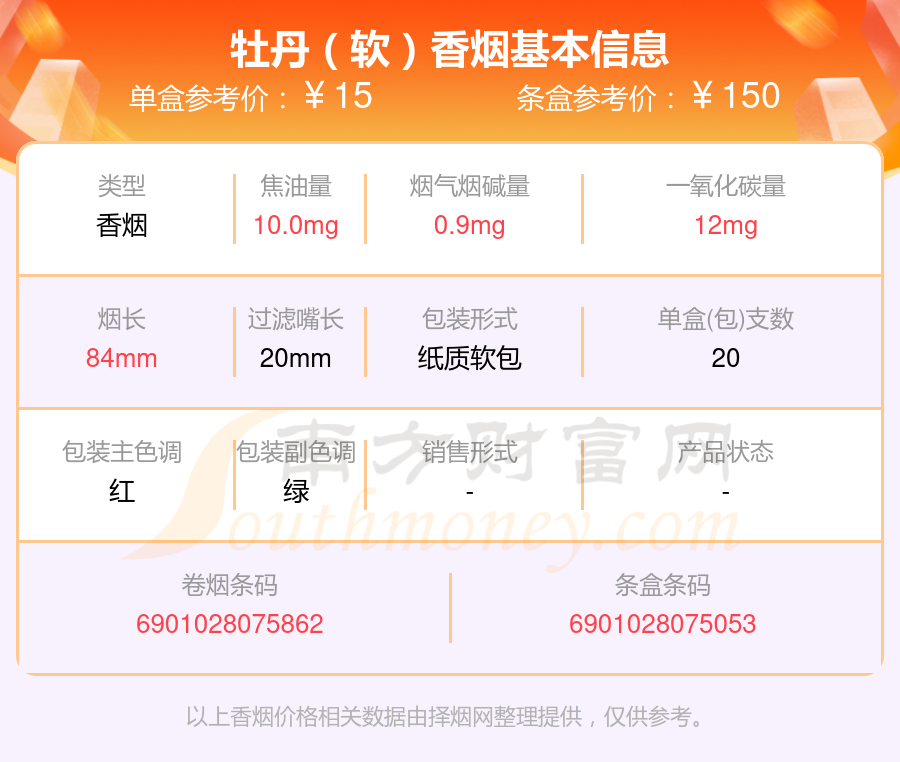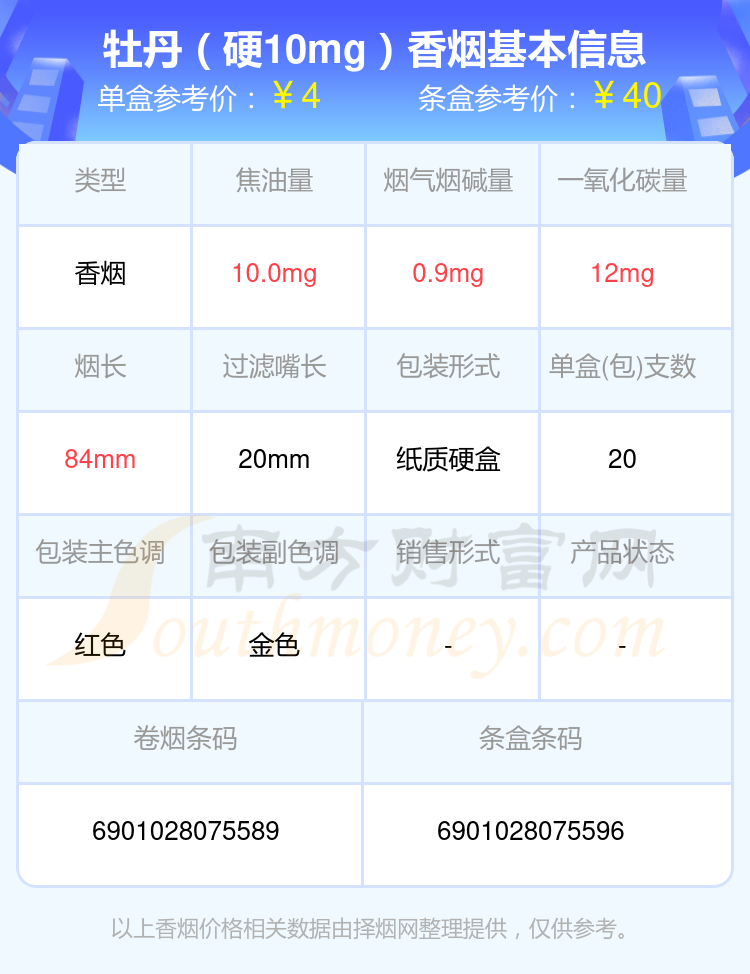 擇煙網(wǎng)為大家盤點了牡丹香煙焦油量低于10mg的,分別有牡丹(藍中支)、牡丹(紅中支)、牡丹(鳳凰細(xì)支)、牡丹(金細(xì)支)、牡丹(青檸細(xì)支)、洛陽牡丹(細(xì)支)、牡丹(青檸)、牡丹(軟)、牡丹(硬10mg)、牡丹(軟藍)等,詳細(xì)價格如下: