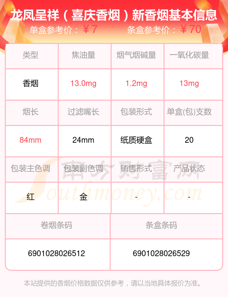 龍鳳呈祥(喜慶香煙)新單盒參考價:7元