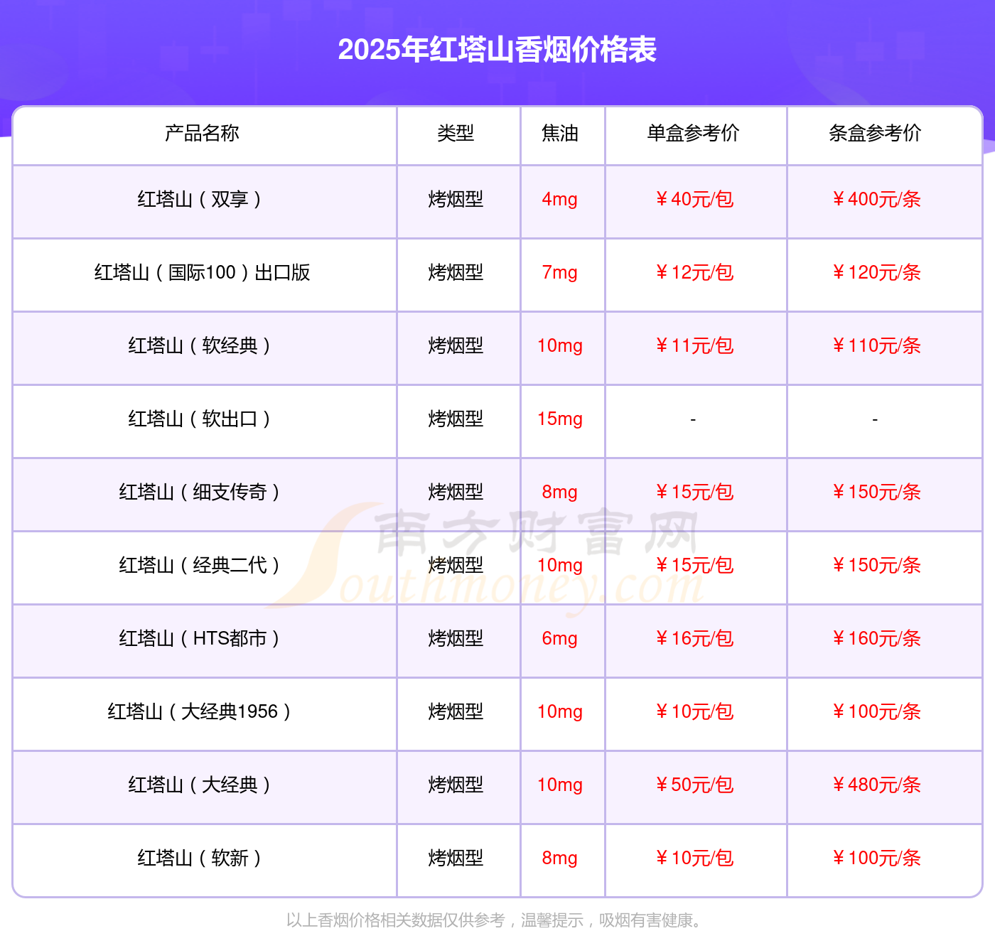 以上香煙價(jià)格相關(guān)數(shù)據(jù)由擇煙網(wǎng)整理提供,僅供參考。
