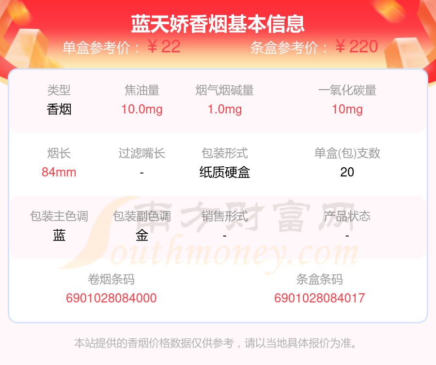 藍(lán)天嬌單盒參考價(jià):22元