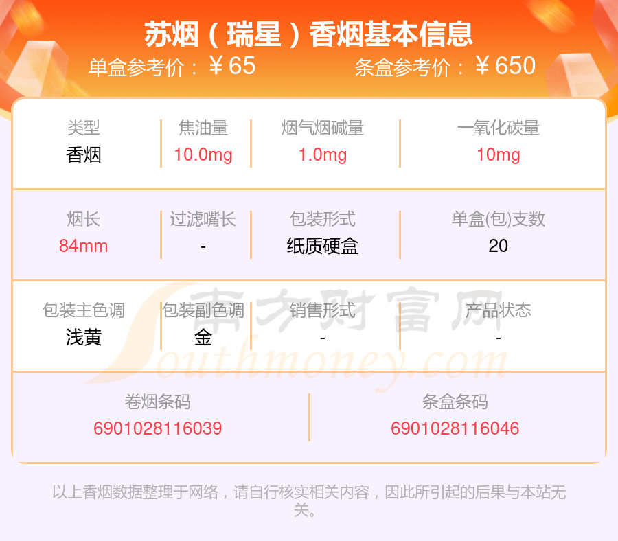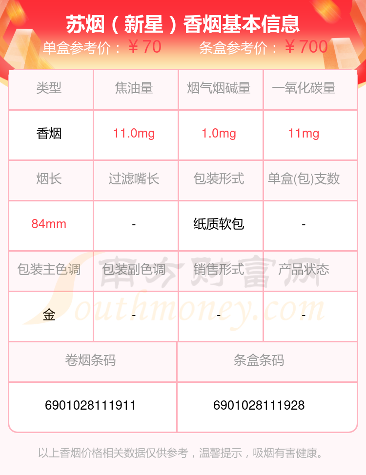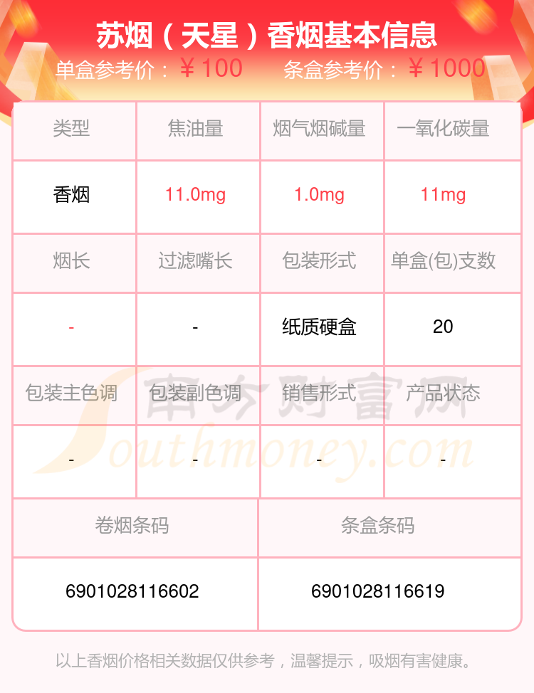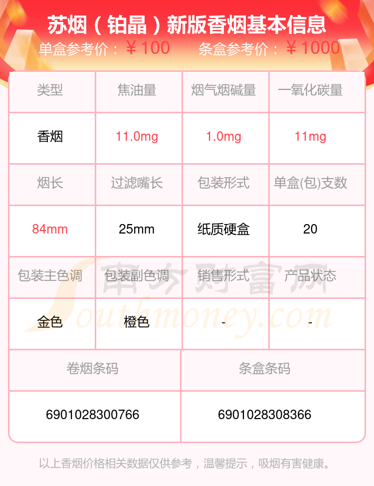 蘇煙香煙尼古丁量1mg以下的煙有蘇煙(鉑晶)新版、蘇煙(瑞星)、蘇煙(金砂)、蘇煙(五星紅杉樹(shù))、蘇煙(東渡)、蘇煙(新星)、蘇煙(七星專供出口版)、蘇煙(濠河)、蘇煙(好風(fēng)光)、蘇煙(天星)等,具體價(jià)格如下: