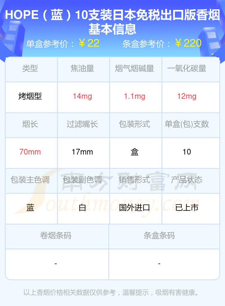 3、HOPE(藍(lán))10支裝日本免稅出口版