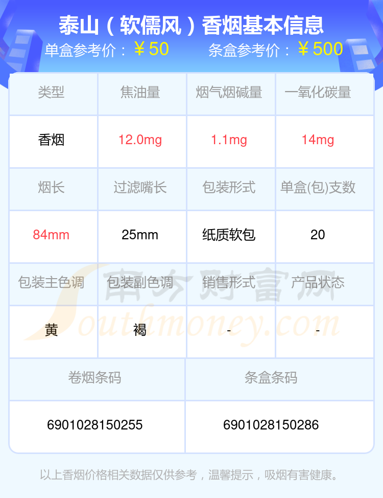 擇煙網(wǎng)為大家盤點了泰山香煙40至70元左右的,分別有泰山(好客山東)、泰山(擎天)、泰山(中海御葉雙中支)、泰山(儒風)、泰山(闊佬2號)、泰山(茉莉香韻)、泰山(軟儒風)、泰山(瀞五)、泰山(小神品)、泰山(拂光細支)等,具體價格如下: