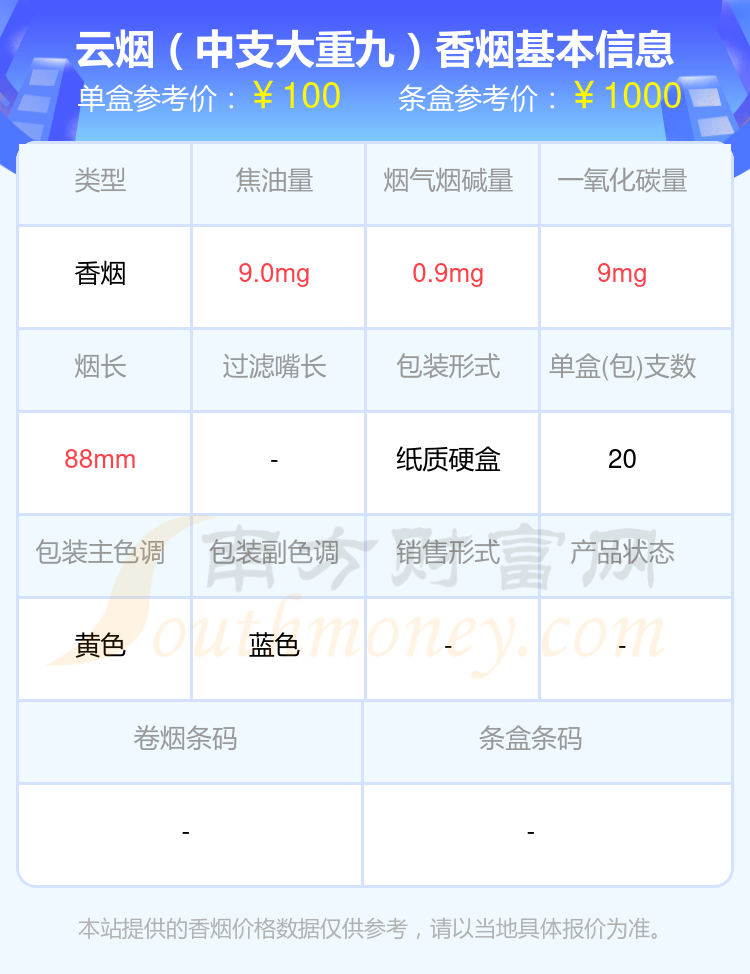 以上香煙價格相關(guān)數(shù)據(jù)僅供參考,溫馨提示,吸煙有害健康。
