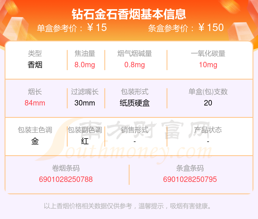以上香煙價(jià)格相關(guān)數(shù)據(jù)僅供參考,溫馨提示,吸煙有害健康。
