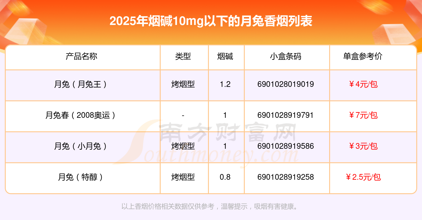 煙堿10mg以下的月兔香煙有哪些?擇煙網(wǎng)為大家整理盤點(diǎn),分別有:
