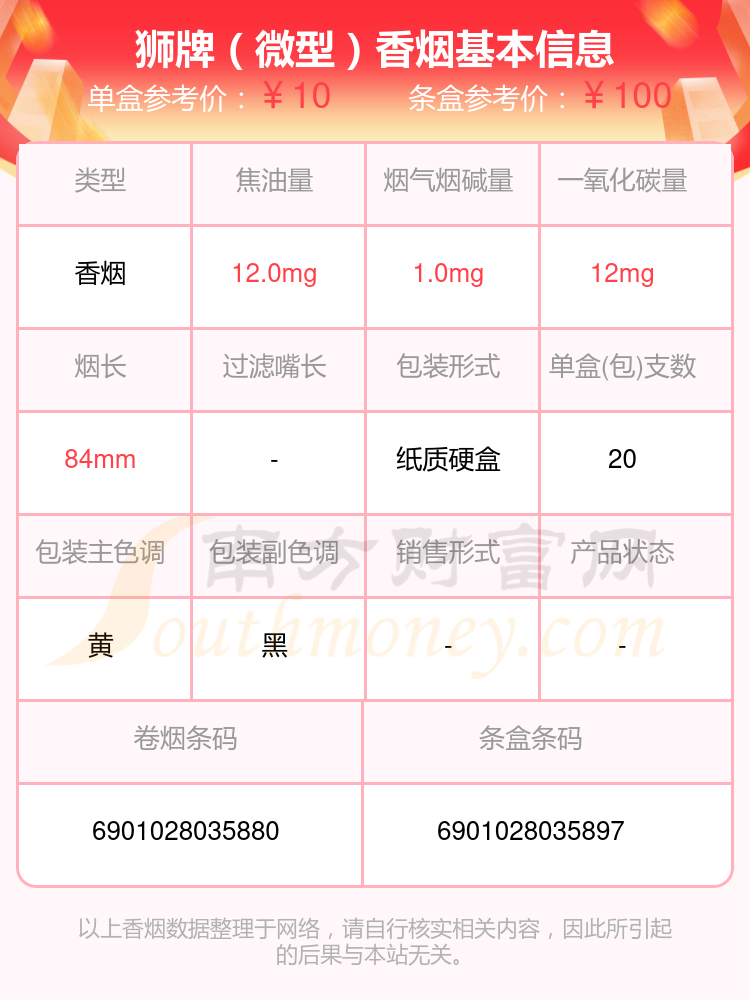 獅牌(微型)香煙網(wǎng)友評分:口味7.1分,外觀7.1分,性價比7.6分,綜合得分7.3分。