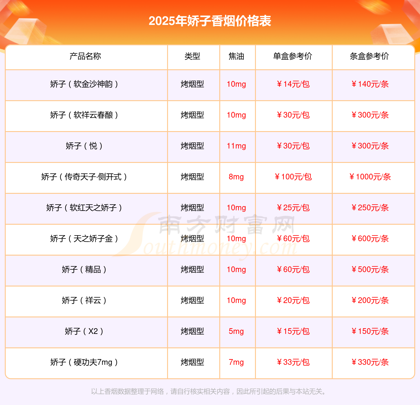 以上香煙數(shù)據(jù)整理于網(wǎng)絡(luò),請(qǐng)自行核實(shí)相關(guān)內(nèi)容,因此所引起的后果與本站無關(guān)。