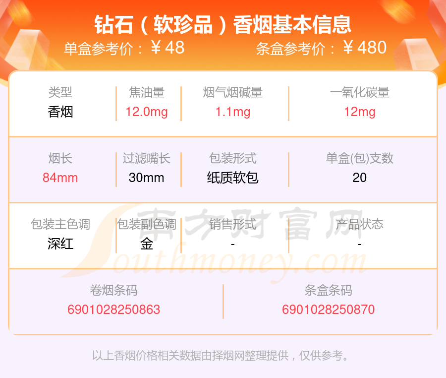 尼古丁1mg到2mg的鉆石香煙有哪些?擇煙網(wǎng)為大家整理盤點(diǎn),有鉆石(軟珍品)、鉆石(豎版硬玫瑰紫)、鉆石(皇冠)、鉆石(雙喜)、鉆石(金鉆)、鉆石(迎賓)、鉆石(經(jīng)典醇和)、鉆石(新一品荷花)、鉆石(玫瑰2代)、鉆石(傳奇子龍)等,詳細(xì)價(jià)格如下: