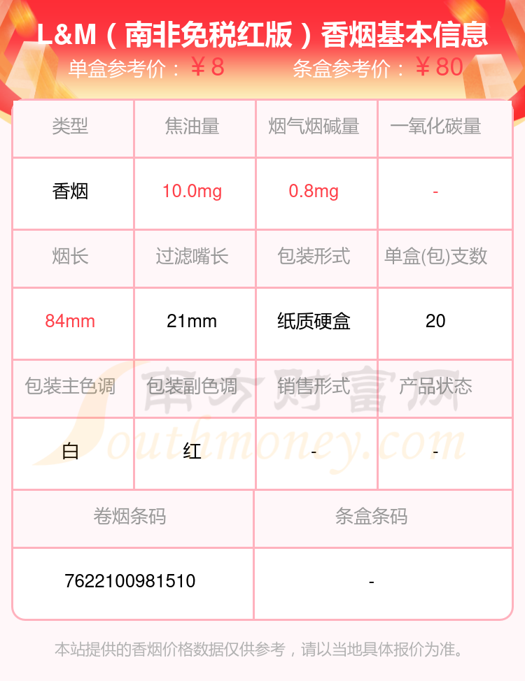 2、L&M(南非免稅紅版)