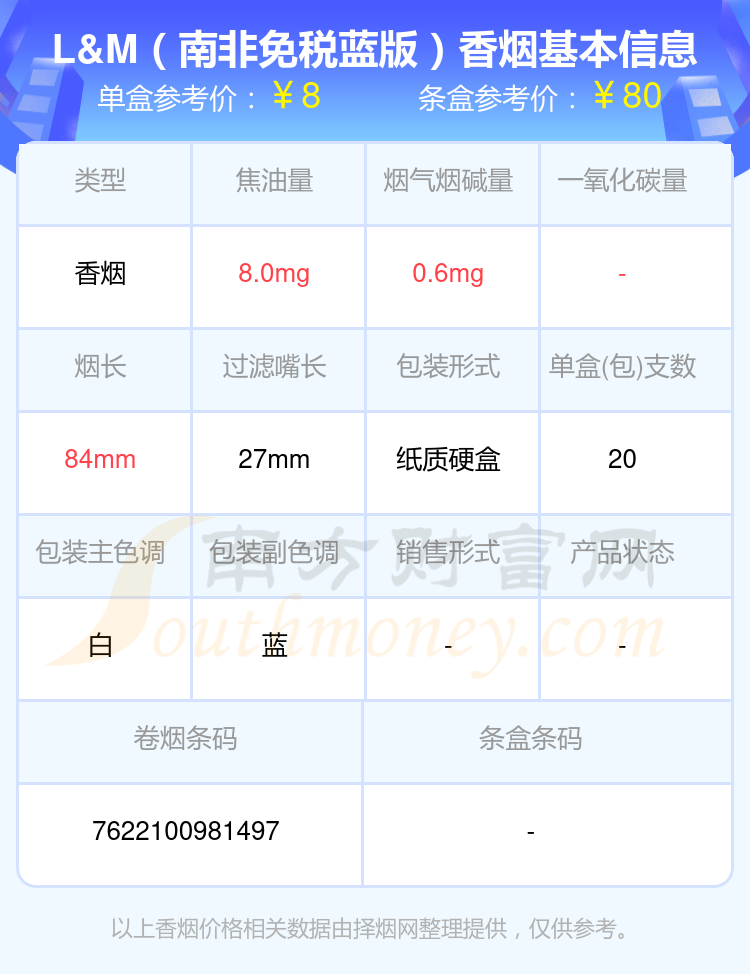 4、L&M(南非免稅藍(lán)版)