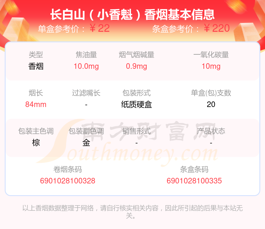 以上香煙數據整理于網絡,請自行核實相關內容,因此所引起的后果與本站無關。