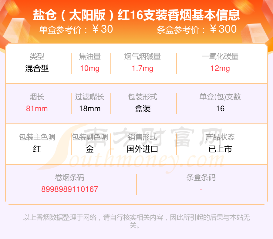2、鹽倉(cāng)(太陽(yáng)版)紅16支裝