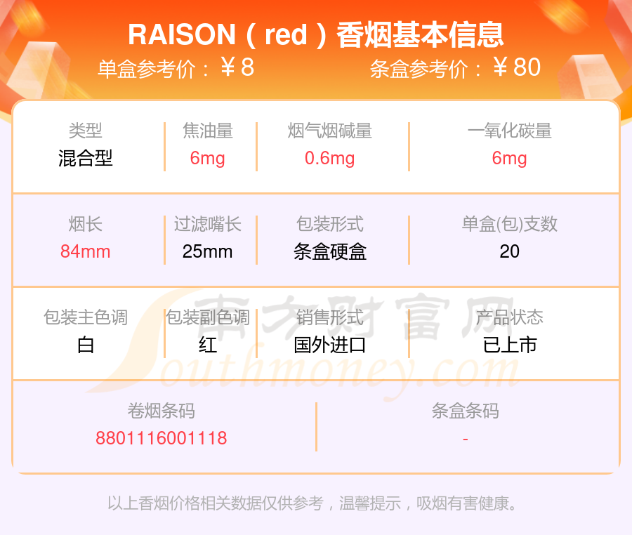 RAISON(韓國貓)香煙焦油量8mg以下的煙有哪些?擇煙網(wǎng)為大家整理提供,分別有:RAISON(red)、RAISON(blue)等,具體價格如下: