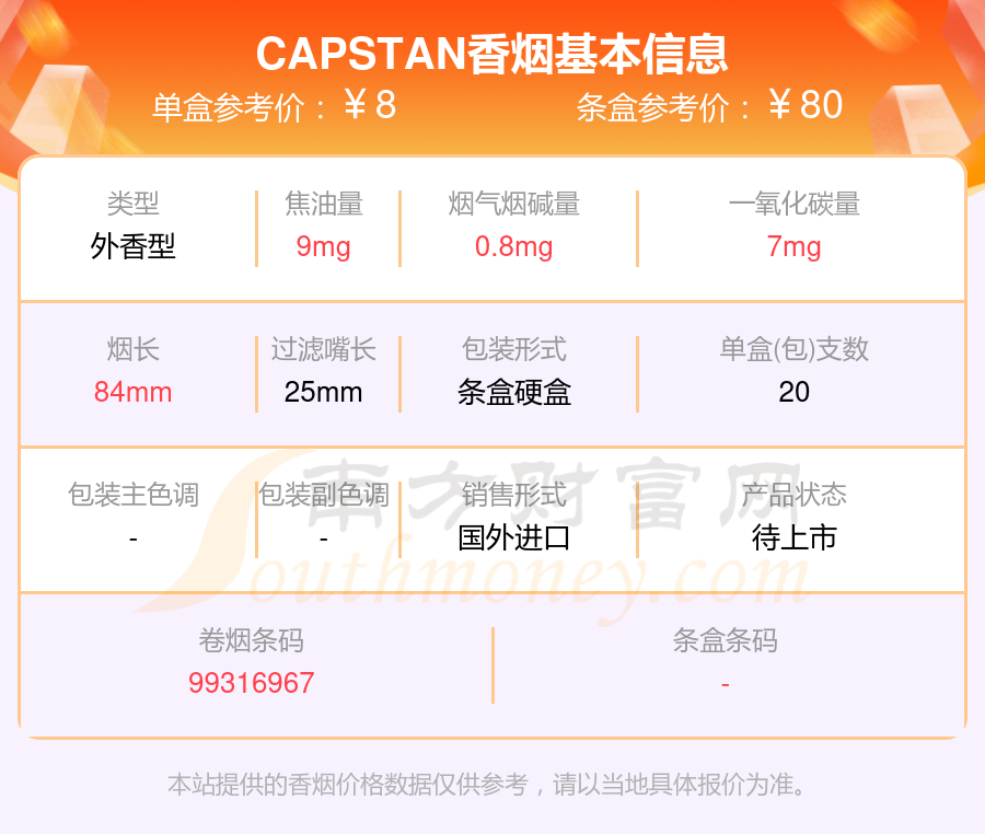 CAPSTAN(白錫包)香煙焦油量8-15mg的有哪些?擇煙網(wǎng)為大家整理提供,分別有: