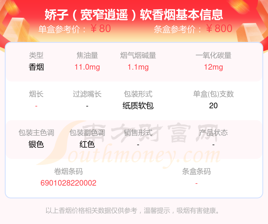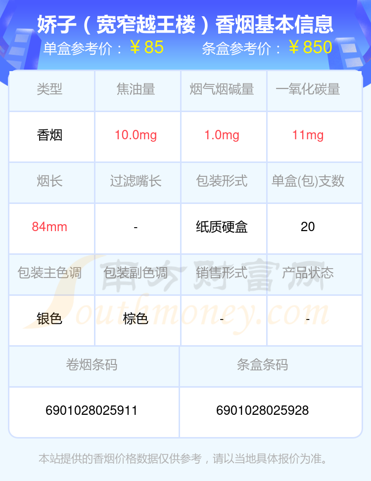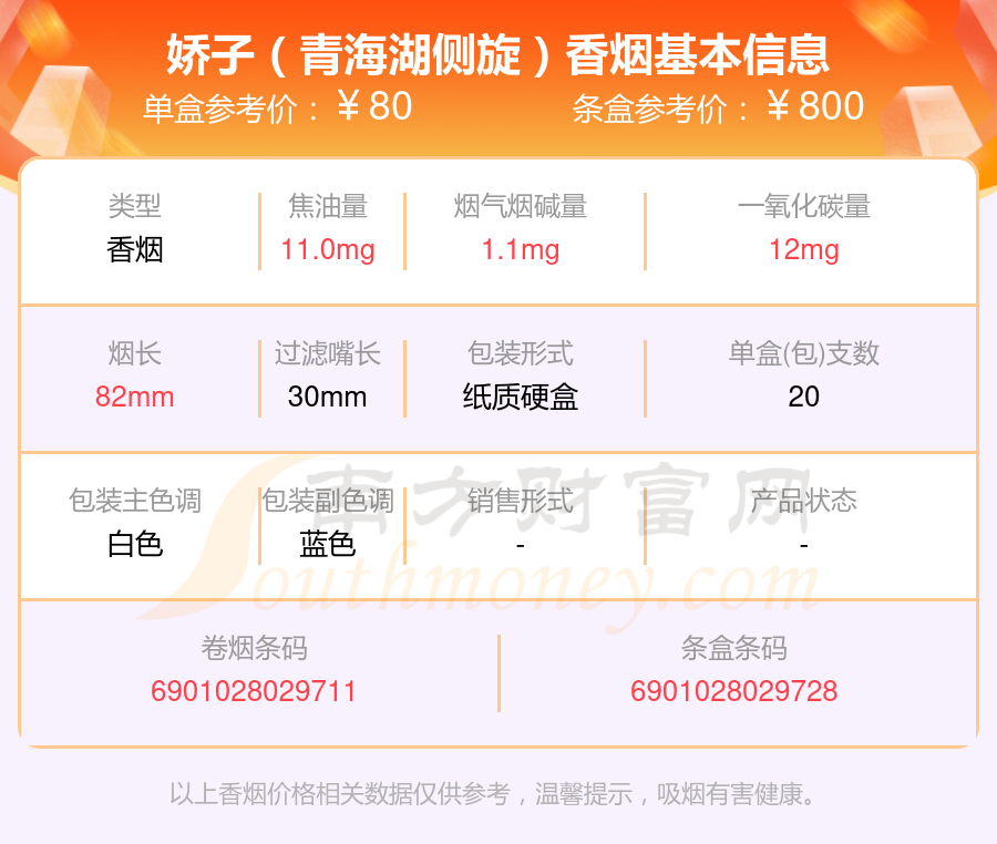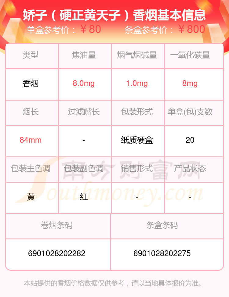 八十到九十元的嬌子香煙有哪些?擇煙網(wǎng)為大家整理盤點,分別有:嬌子(紅韻)、嬌子(寬窄越王樓)、嬌子(青海湖側(cè)旋)、嬌子(寬窄如意保濕版)307、嬌子(硬正黃天子)、嬌子(寬窄逍遙)軟、嬌子(九寨溝)等,具體價格如下: