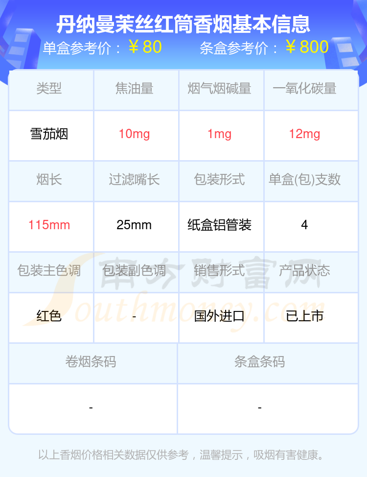 擇煙網(wǎng)為大家盤點(diǎn)了五十至九十元左右的DANNEMANN(丹納曼)香煙,分別有丹納曼茉絲黑筒參考價(jià)80元/包、丹納曼茉絲紅筒參考價(jià)80元/包、丹納曼白筒參考價(jià)75元/包、丹納曼(特選所羅門)參考價(jià)68元/包等。
