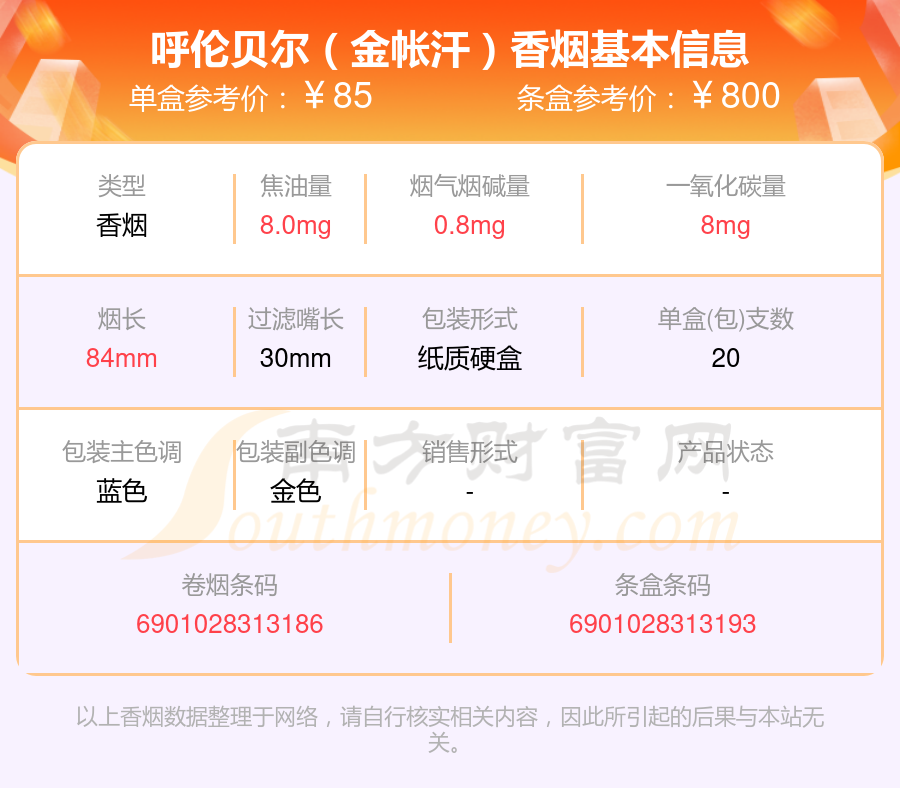呼倫貝爾香煙九十元以上的煙有哪些?擇煙網(wǎng)為大家整理提供,分別有:呼倫貝爾(金帳汗)、呼倫貝爾(金)等,具體價格如下: