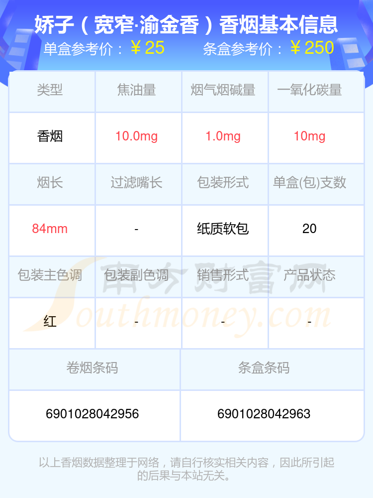 嬌子(寬窄·渝金香)單盒參考價:25元