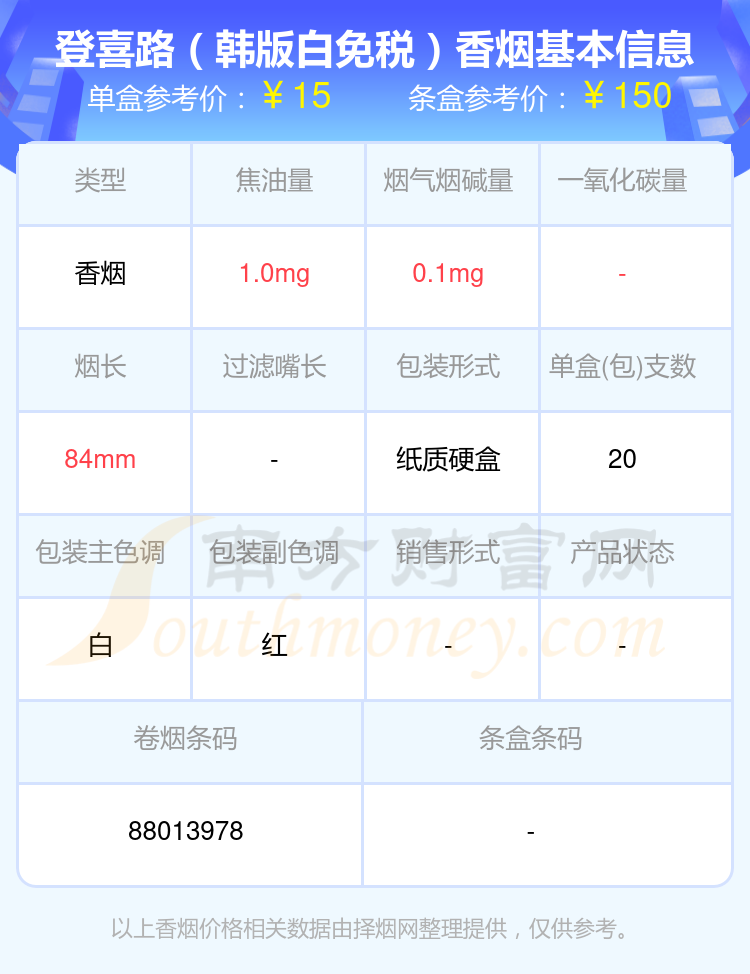 以上香煙價格相關數據由擇煙網整理提供,僅供參考。