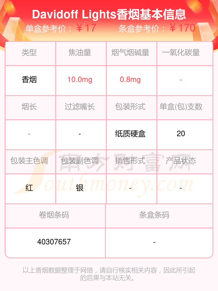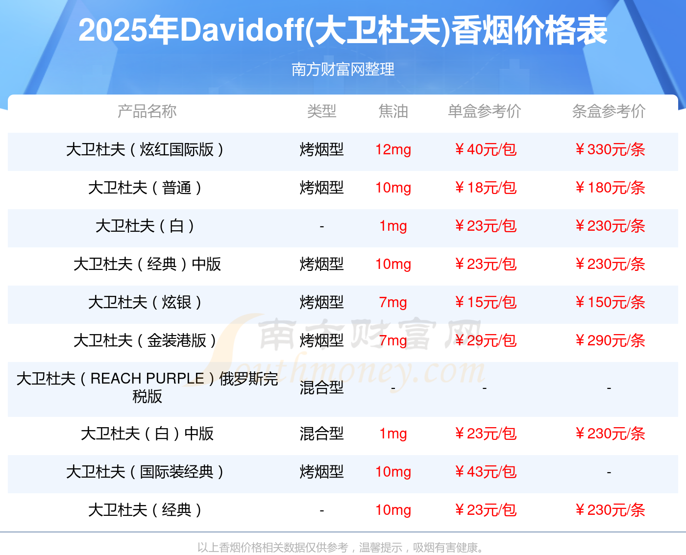 以上香煙價(jià)格相關(guān)數(shù)據(jù)由擇煙網(wǎng)整理提供,僅供參考。