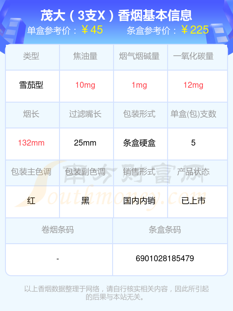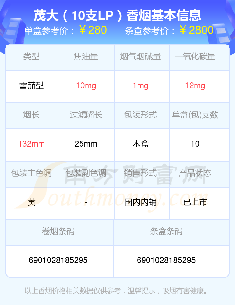 茂大香煙焦油量8~15mg左右的煙有哪些?擇煙網(wǎng)為大家整理提供,分別有:茂大(5支LP)、茂大(10支LP)、茂大(25支XLP)、茂大(25支LP)、茂大(2號)、茂大(3支X)、茂大(世家)、茂大(盛世)等,具體價格如下: