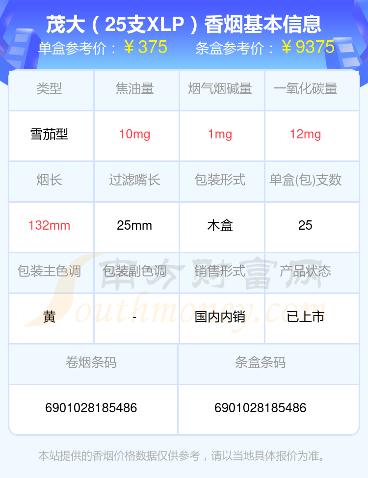 本站提供的香煙價格數(shù)據(jù)僅供參考,請以當?shù)鼐唧w報價為準。