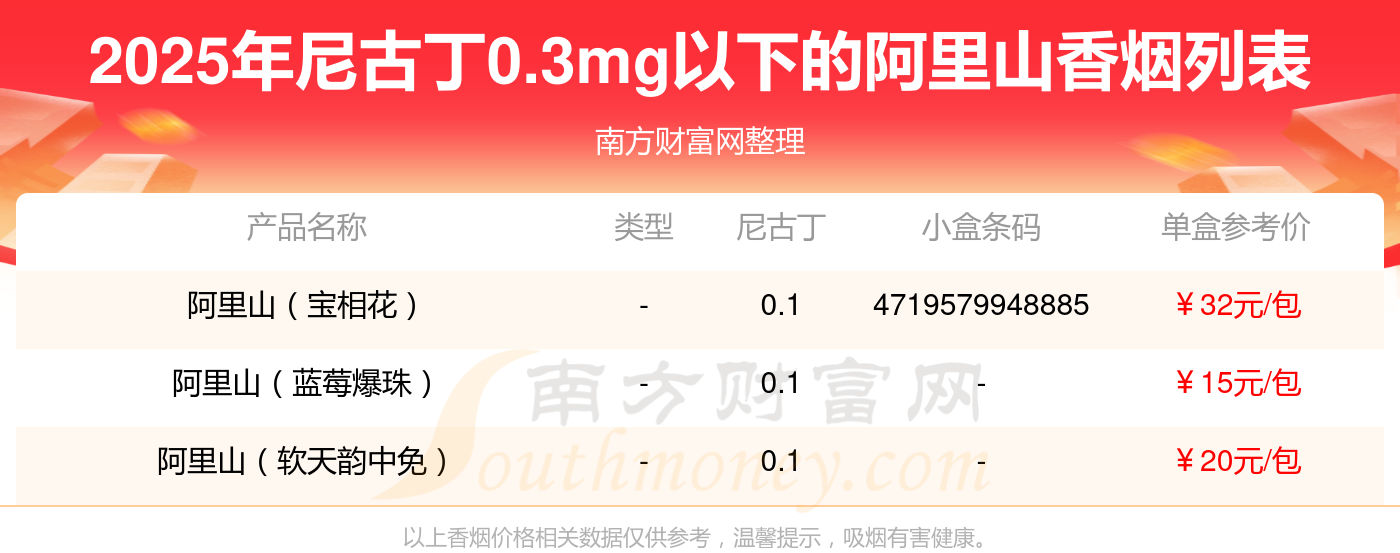 擇煙網(wǎng)為大家盤點了尼古丁0.3mg以下的阿里山香煙,有以下這些: