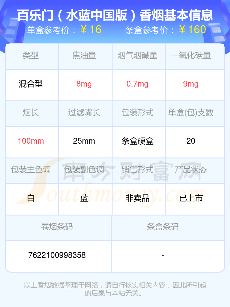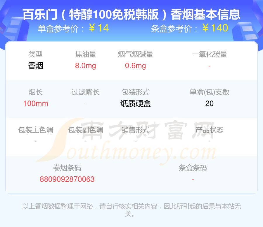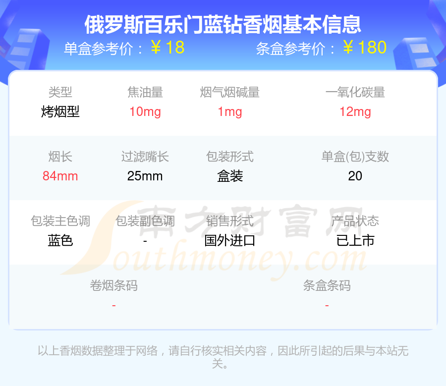 以上香煙數(shù)據(jù)整理于網(wǎng)絡(luò),請(qǐng)自行核實(shí)相關(guān)內(nèi)容,因此所引起的后果與本站無(wú)關(guān)。