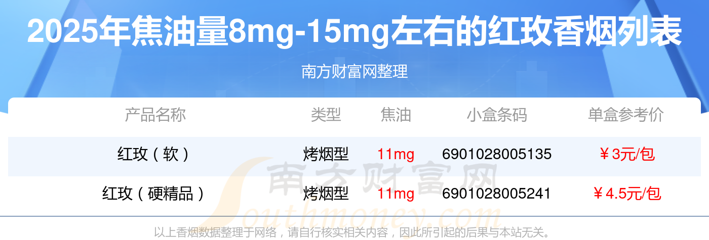 紅玫(軟)參考價(jià)3.0元/包、紅玫(硬精品)參考價(jià)4.5元/包等。
