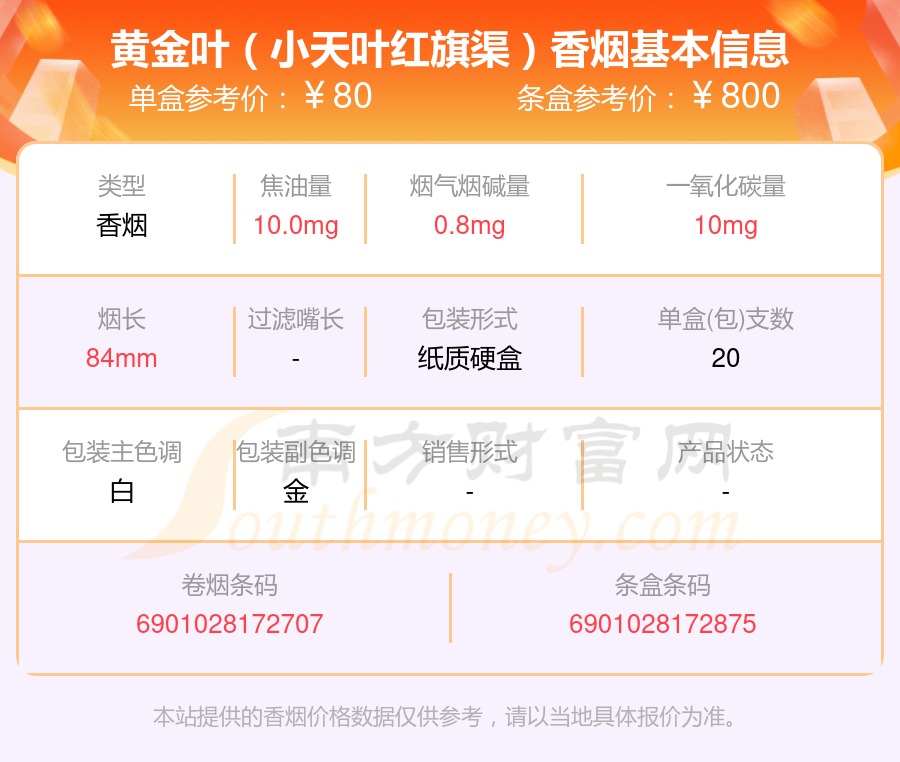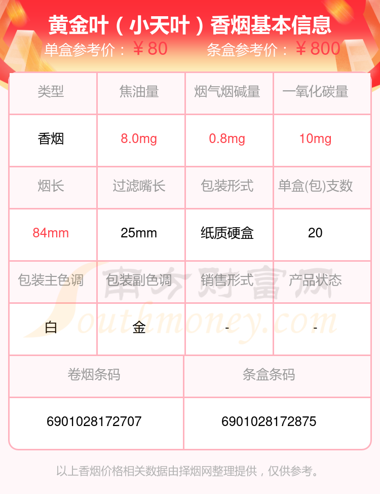 擇煙網(wǎng)為大家盤點(diǎn)了80元~90元的黃金葉香煙,有黃金葉(小天葉)、黃金葉(小天葉紅旗渠)等,詳細(xì)價(jià)格如下: