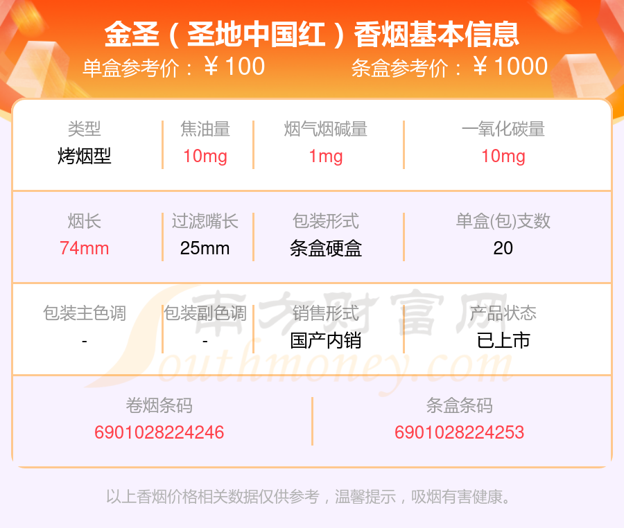 金圣(圣地中國(guó)紅)單盒參考價(jià):100元