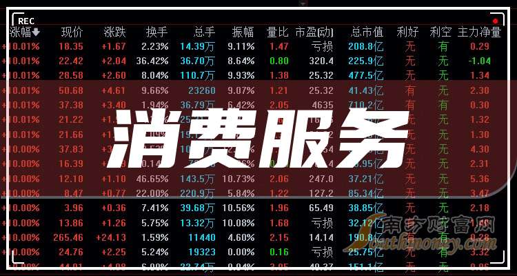 據(jù)南方財富網(wǎng)概念查詢工具數(shù)據(jù)顯示,消費服務上市公司有: