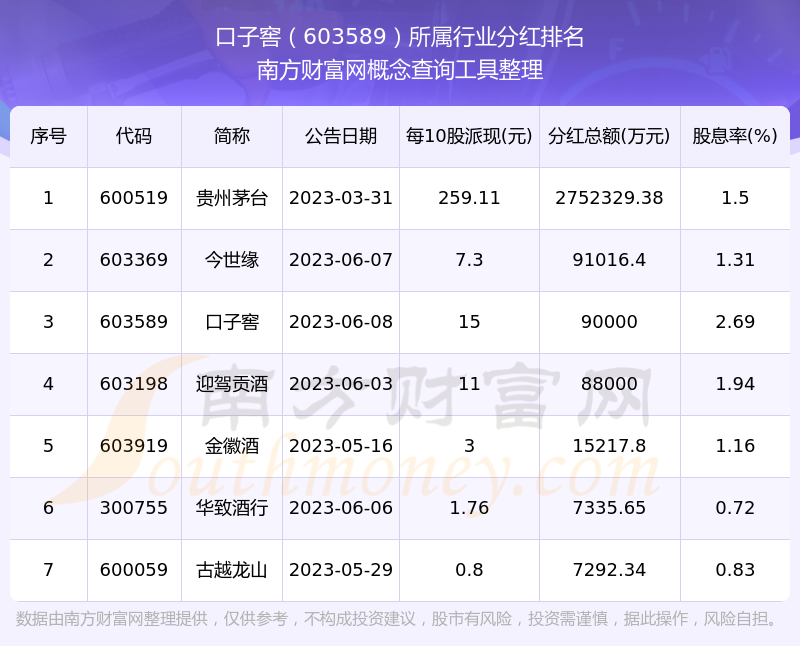 二、口子窖603589行業(yè)分紅排名