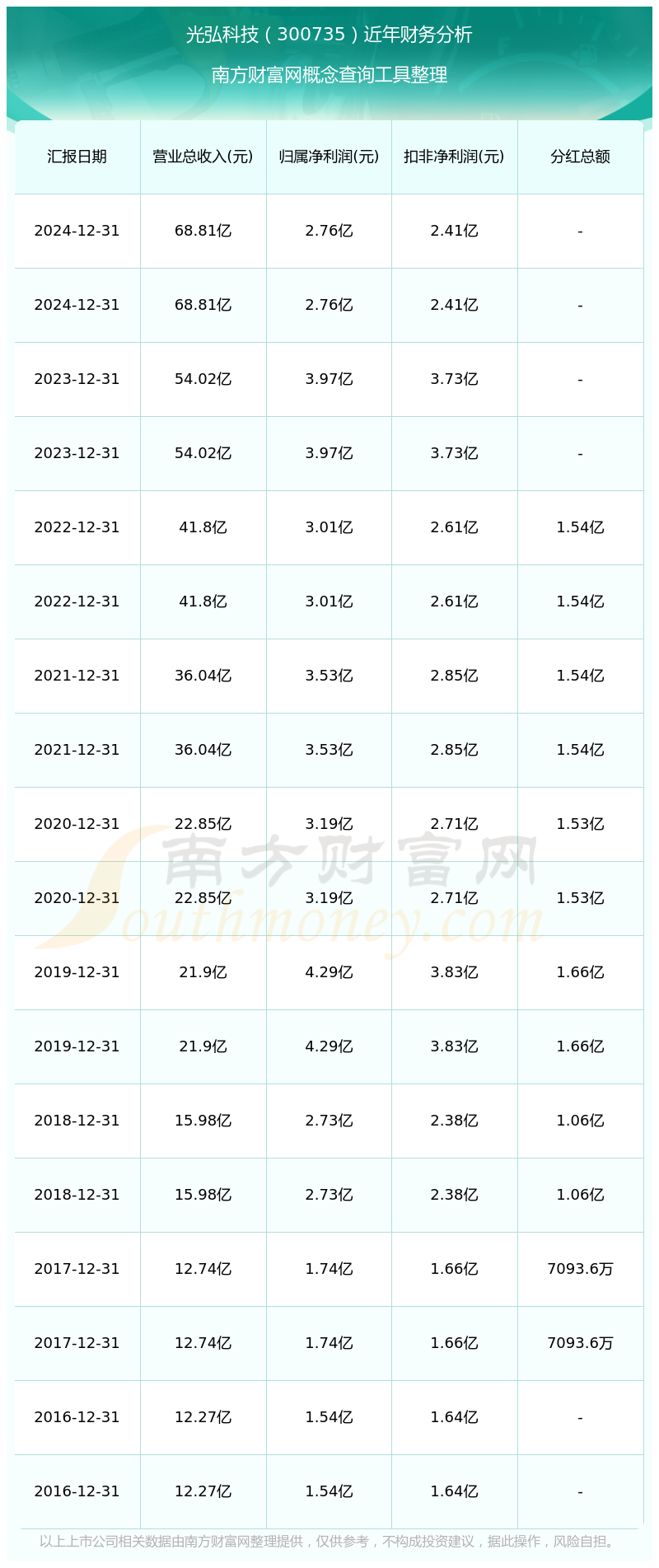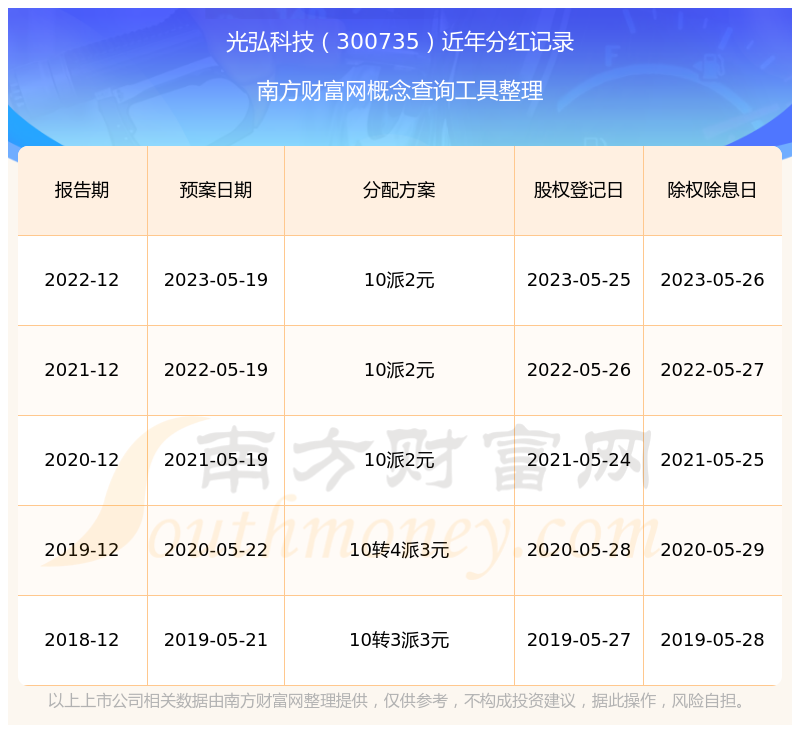 光弘科技?xì)v年分紅派息情況如下表所示: