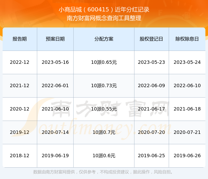 小商品城最新一次公布的分紅方案:10派0.65元。
