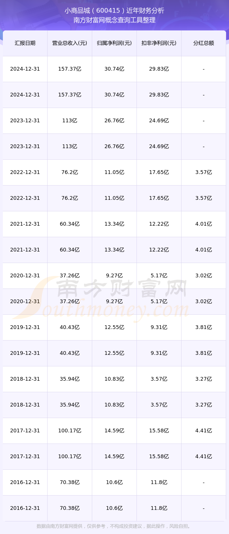 小商品城歷年分紅派息情況如下表所示: