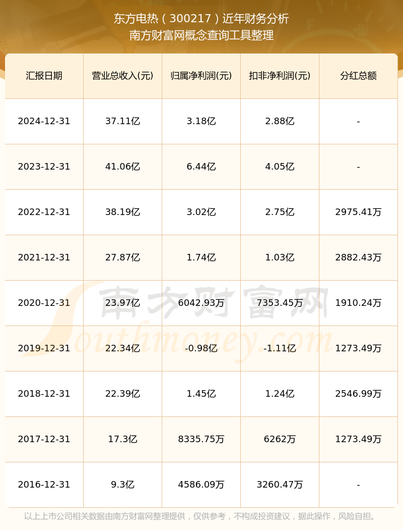 近年東方電熱分紅派息情況如下表所示: