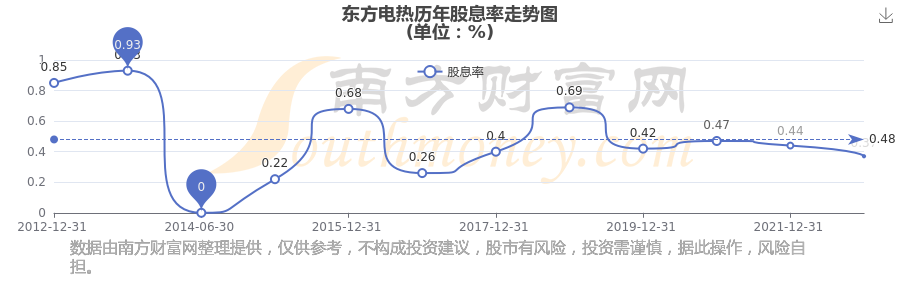 東方電熱歷年股息率走勢如下圖: