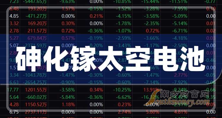 據南方財富網概念查詢工具數據顯示,砷化鎵太空電池上市公司龍頭如下: