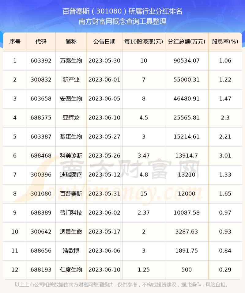 二、百普賽斯301080行業(yè)分紅排名