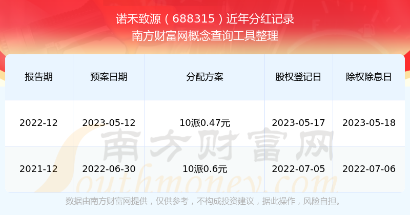 諾禾致源最新一次公布的分紅方案為10派0.47元。本次權(quán)益分派股權(quán)登記日為2023年5月17日,除權(quán)除息日為2023年5月18日,派息日為2023年5月18日。