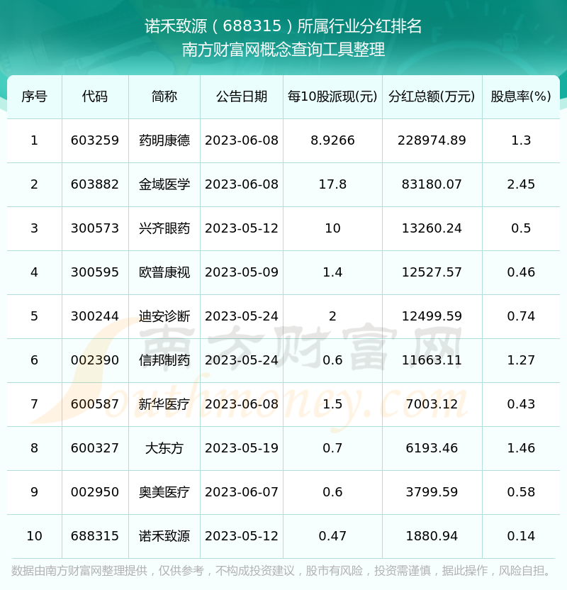 二、諾禾致源688315行業(yè)分紅排名