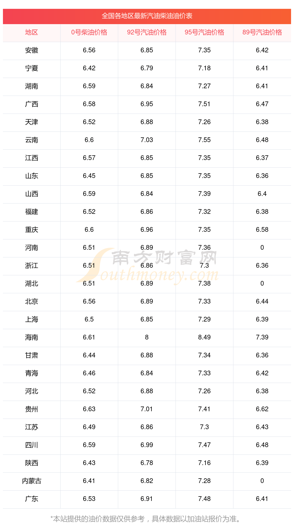 油價數(shù)據(jù)僅供參考,請以您所在地區(qū)的加油站報價為準(zhǔn)。南方財富網(wǎng)發(fā)布此信息的目的在于傳播更多信息,對使用該油價信息所導(dǎo)致的結(jié)果概不承擔(dān)任何責(zé)任。