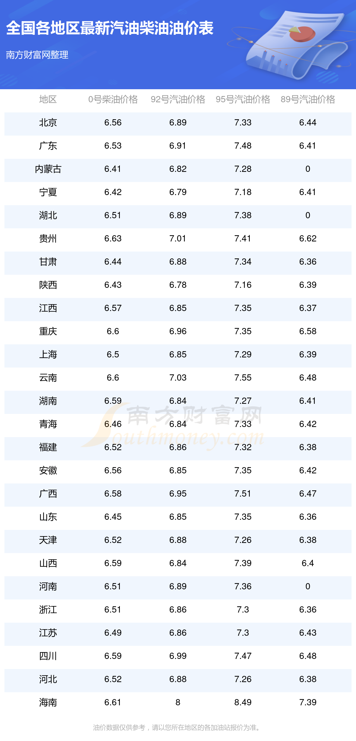 2025年12月2日全國(guó)油價(jià)調(diào)整及最新汽油價(jià)格表