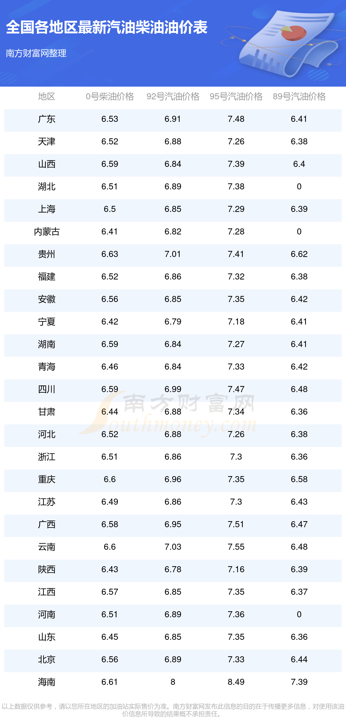 以上油價信息是當(dāng)前市場上最新油價信息,油價數(shù)據(jù)僅供參考,實際在售油價可能有小幅偏差,請以您所在地區(qū)的加油站實際售價為準(zhǔn)。