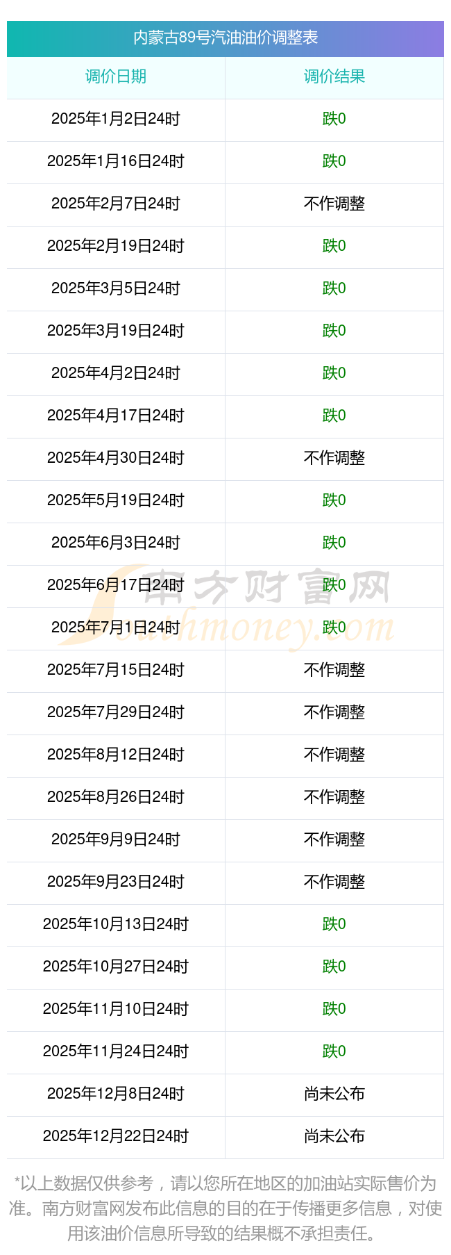內(nèi)蒙古呼和浩特2025年油價調(diào)整時間及價格表