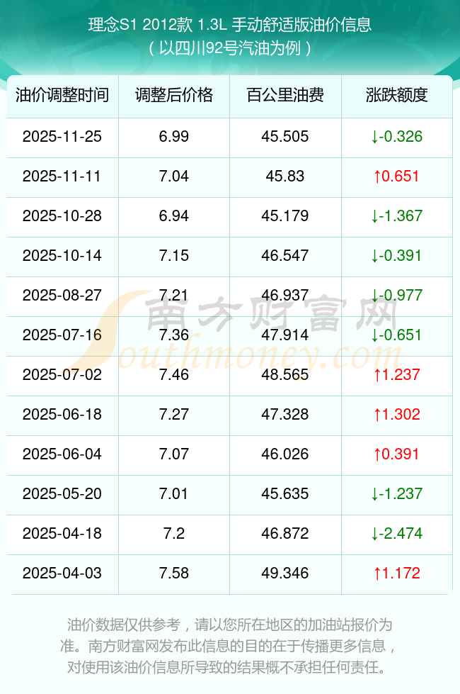 以上油耗數(shù)據(jù)由南方財富網(wǎng)整理提供,僅供參考。